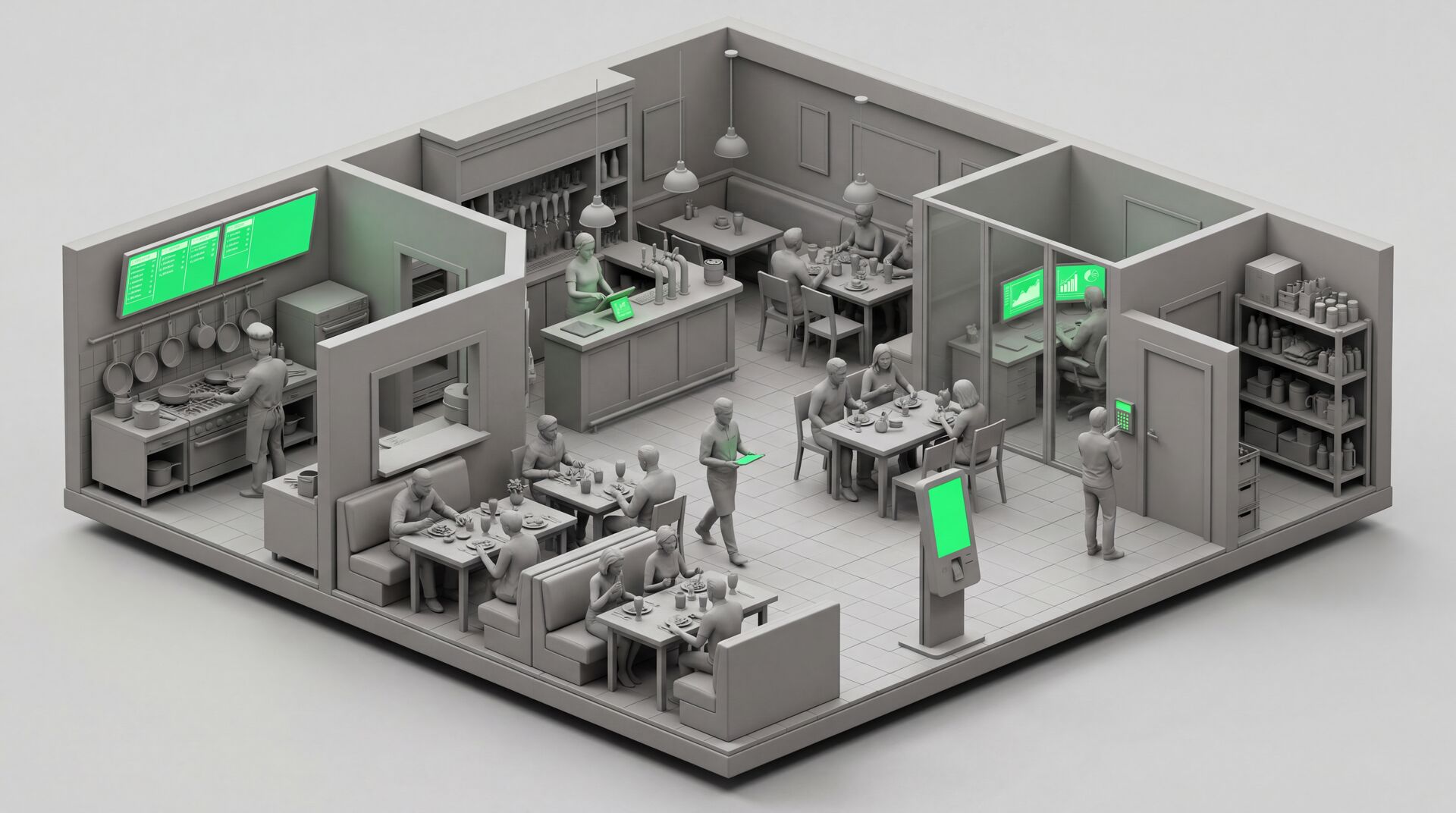 Kasse, Küche, Lager, Team — alles läuft über ein System. In Echtzeit. Automatisch. Vernetzt.